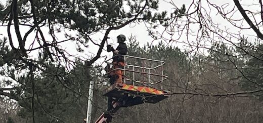 Removing two Scots pine trees that had become dangerous to the house. The branches and foliage being chipped to create a mulch for the borders containing Rhododendron and azaleas The mulch created from one...