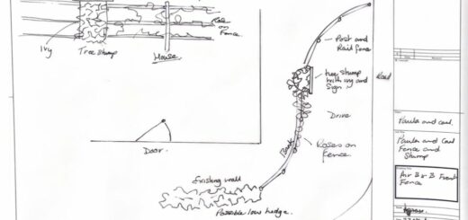 Download PDF drawing Click Here Using the stump from the removed pine tree to create a post and rail fence to add extra strength to fence